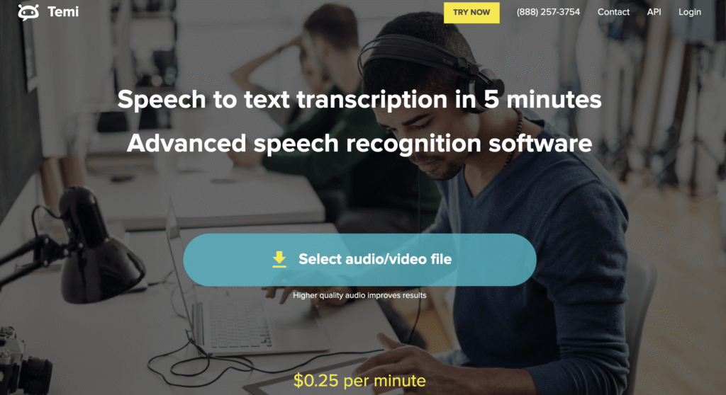 You can upload your audio or video files, and Temi converts them into text in just a few minutes