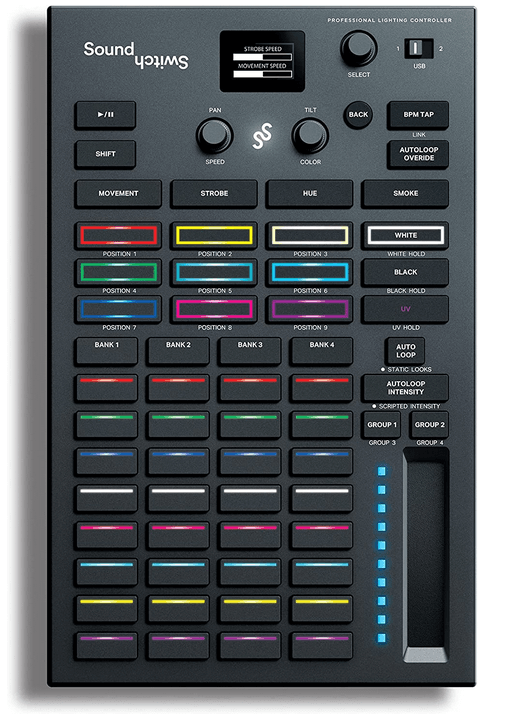 SoundSwitch Control One is a DMX controller and interface that gives you 1:1 control for SoundSwitch software.